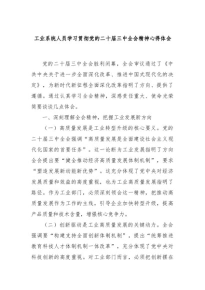 【七哥公文】2024年:工业系统人员学习贯彻党的二十届三中全会精神心得体会+更多免费公文+VX:QiGeGongWen2024