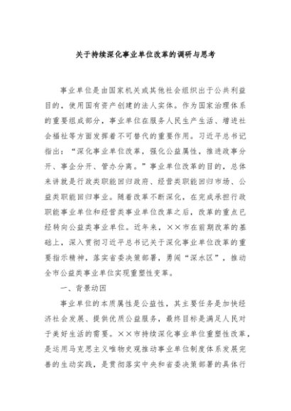 / 【七哥公文】2024年:关于持续深化事业单位改革的调研与思考+更多免费公文+VX:QiGeGongWen2024