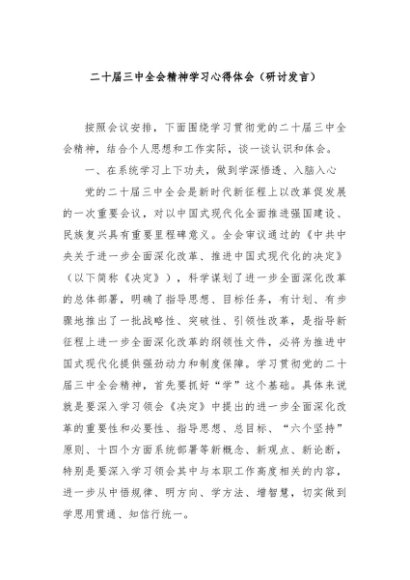 / 【七哥公文】2024年:二十届三中全会精神学习心得体会(研讨发言)+更多免费公文+VX:QiGeGongWen2024
