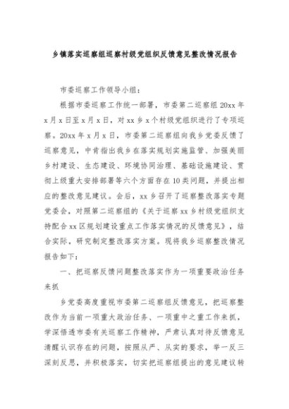 / 【七哥公文】2024年:乡镇落实巡察组巡察村级党组织反馈意见整改情况报告+更多免费公文+VX:QiGeGongWen2024