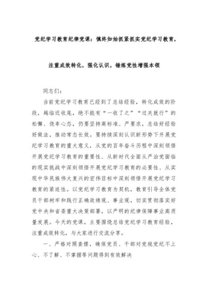 【七哥公文】2024年:党纪学习教育纪律党课:慎终如始抓紧抓实党纪学习教育,注重成效转化,强化认识,锤炼党性增强本领+更多免费公文+VX:QiGeGongWen2024