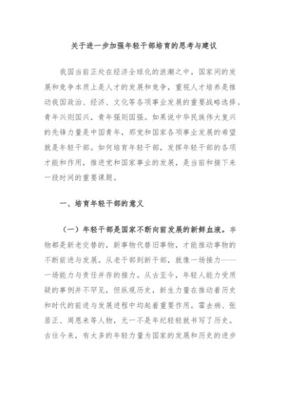 / 【七哥公文】2024年:关于进一步加强年轻干部培育的思考与建议+更多免费公文+VX:QiGeGongWen2024