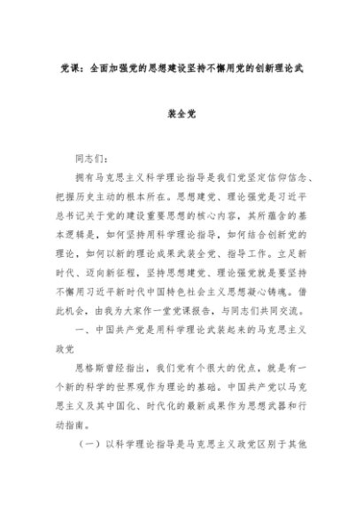 【七哥公文】2024年:党课:全面加强党的思想建设坚持不懈用党的创新理论武装全党+更多免费公文+VX:QiGeGongWen2024