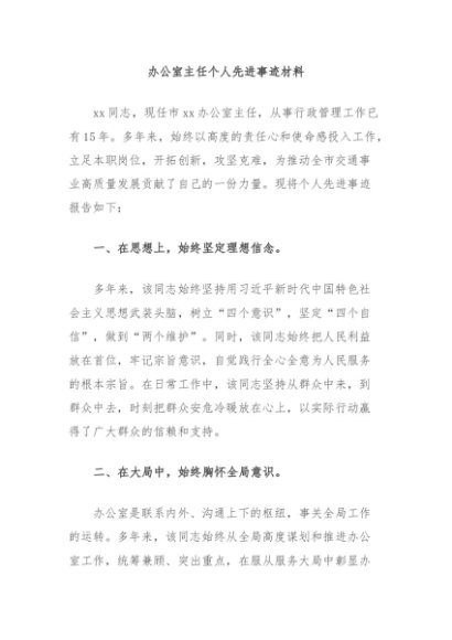 / 【七哥公文】2024年:办公室主任个人先进事迹材料+更多免费公文+VX:QiGeGongWen2024