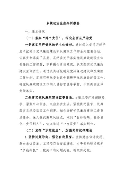 【七哥公文】2024年:乡镇政治生态分析报告+更多免费公文+VX:QiGeGongWen2024
