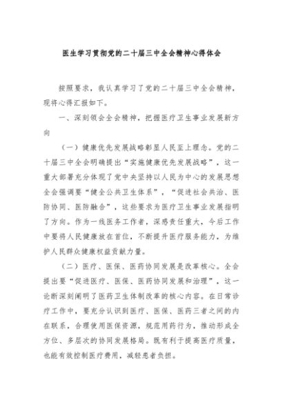 / 【七哥公文】2024年:医生学习贯彻党的二十届三中全会精神心得体会+更多免费公文+VX:QiGeGongWen2024