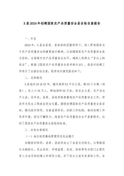 【七哥公文】2024年:X县2024年创建国家农产品质量安全县自检自查报告+更多免费公文+VX:QiGeGongWen2024