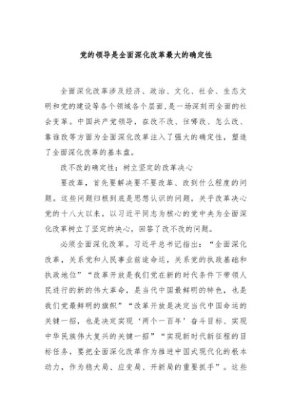 / 【七哥公文】2024年:党的领导是全面深化改革最大的确定性+更多免费公文+VX:QiGeGongWen2024