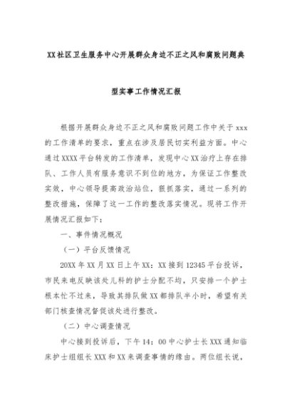【七哥公文】2024年:XX社区卫生服务中心开展群众身边不正之风和腐败问题典型实事工作情况汇报+更多免费公文+VX:QiGeGongWen2024