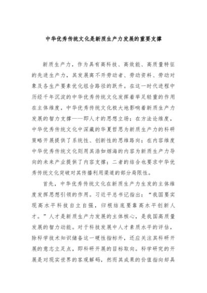 【七哥公文】2024年:中华优秀传统文化是新质生产力发展的重要支撑+更多免费公文+VX:QiGeGongWen2024