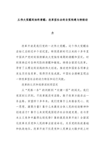 【七哥公文】2024年:从伟大觉醒到始终清醒:改革型社会的自觉构建与持续动力+更多免费公文+VX:QiGeGongWen2024