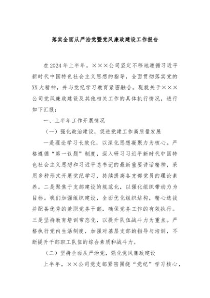/ 【七哥公文】2024年:落实全面从严治党暨党风廉政建设工作报告+更多免费公文+VX:QiGeGongWen2024