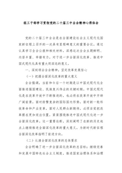 【七哥公文】2024年:组工干部学习贯彻党的二 十届三 中全会精神心得体会+更多免费公文+VX:QiGeGongWen2024