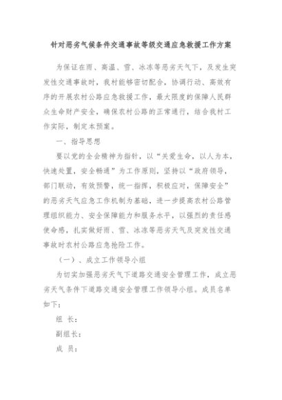 / 【七哥公文】2024年:针对恶劣气候条件交通事故等级交通应急救援工作方案+更多免费公文+VX:QiGeGongWen2024