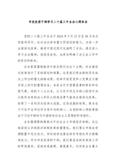 / 【七哥公文】2024年:市发改委干部学习二十届三中全会心得体会+更多免费公文+VX:QiGeGongWen2024