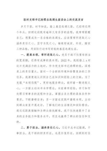/ 【七哥公文】2024年:驻村支部书记助理在选调生座谈会上的交流发言+更多免费公文+VX:QiGeGongWen2024