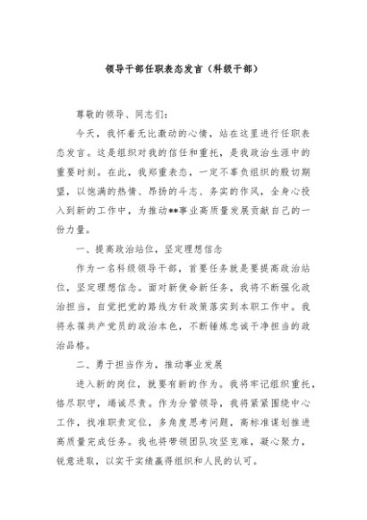 / 【七哥公文】2024年:领导干部任职表态发言(科级干部)+更多免费公文+VX:QiGeGongWen2024