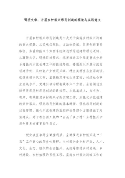 / 【七哥公文】2024年:调研文章:开展乡村振兴示范创建的理论与实践意义+更多免费公文+VX:QiGeGongWen2024