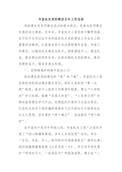 / 【七哥公文】2024年:市直机关党的建设五年工作总结+更多免费公文+VX:QiGeGongWen2024