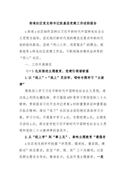 / 【七哥公文】2024年:街道社区党支部书记抓基层党建工作述职报告+更多免费公文+VX:QiGeGongWen2024