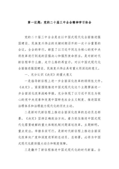 / 【七哥公文】2024年:第一议题:党的二十届三中全会精神学习体会+更多免费公文+VX:QiGeGongWen2024