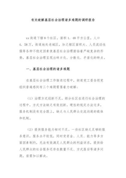 / 【七哥公文】2024年:有关破解基层社会治理诸多难题的调研报告+更多免费公文+VX:QiGeGongWen2024