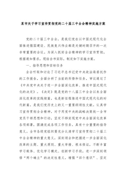 【七哥公文】2024年:某市关于学习宣传贯彻党的二十届三中全会精神实施方案+更多免费公文+VX:QiGeGongWen2024