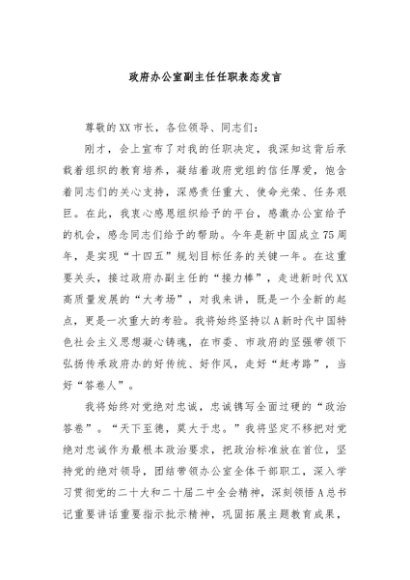 【七哥公文】2024年:政府办公室副主任任职表态发言+更多免费公文+VX:QiGeGongWen2024