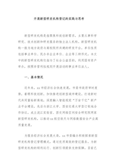 / 【七哥公文】2024年:开展新型研发机构登记的实践与思考+更多免费公文+VX:QiGeGongWen2024