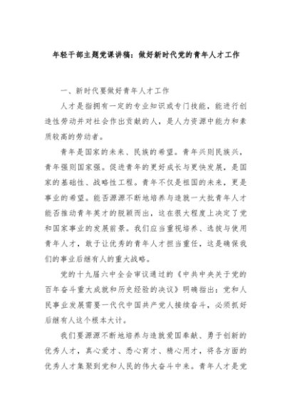 / 【七哥公文】2024年:年轻干部主题党课讲稿:做好新时代党的青年人才工作+更多免费公文+VX:QiGeGongWen2024