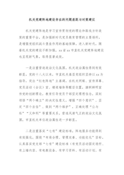 / 【七哥公文】2024年:机关党建阵地建设存在的问题差距与对策建议+更多免费公文+VX:QiGeGongWen2024