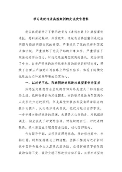 / 【七哥公文】2024年:学习违纪违法典型案例的交流发言材料+更多免费公文+VX:QiGeGongWen2024
