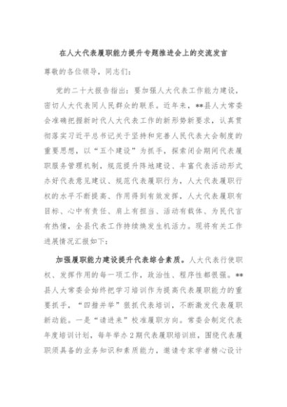 / 【七哥公文】2024年:在人大代表履职能力提升专题推进会上的交流发言+更多免费公文+VX:QiGeGongWen2024