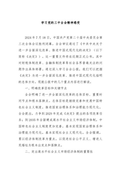 / 【七哥公文】2024年:学习党的三中全会精神感受+更多免费公文+VX:QiGeGongWen2024