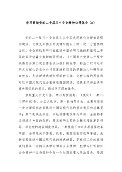 / 【七哥公文】2024年:学习贯彻党的二十届三中全会精神心得体会(2)+更多免费公文+VX:QiGeGongWen2024