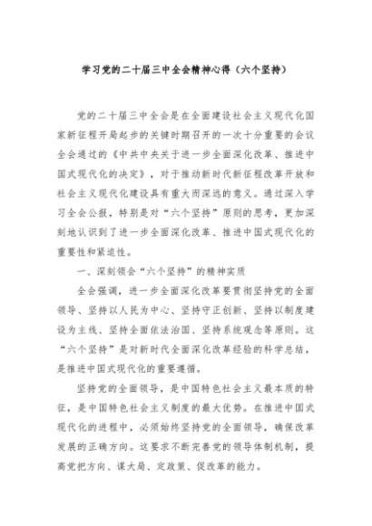 / 【七哥公文】2024年:学习党的二十届三中全会精神心得(六个坚持)+更多免费公文+VX:QiGeGongWen2024