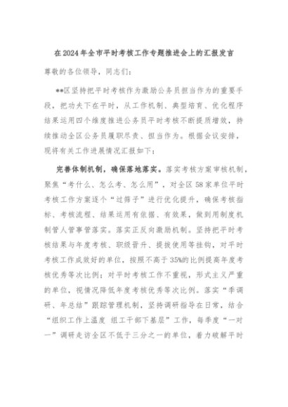 【七哥公文】2024年:在2024年全市平时考核工作专题推进会上的汇报发言+更多免费公文+VX:QiGeGongWen2024