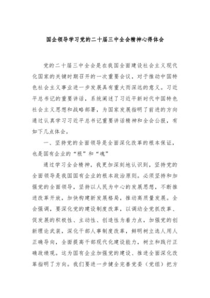 / 【七哥公文】2024年:国企领导学习党的二十届三中全会精神心得体会+更多免费公文+VX:QiGeGongWen2024