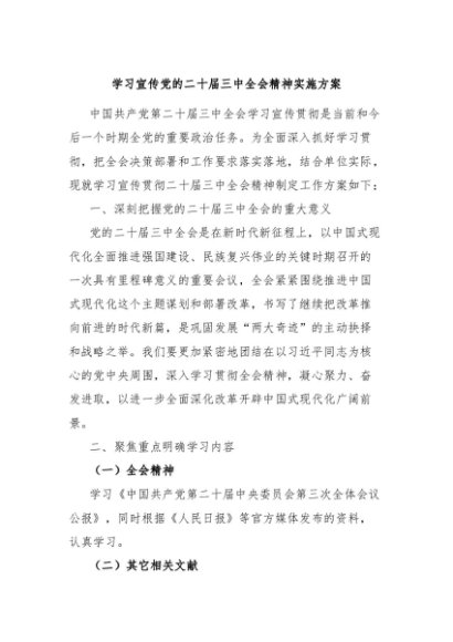 / 【七哥公文】2024年:学习宣传党的二十届三中全会精神实施方案+更多免费公文+VX:QiGeGongWen2024