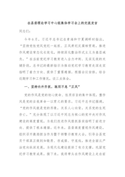 / 【七哥公文】2024年:在县委理论学习中心组集体学习会上的交流发言+更多免费公文+VX:QiGeGongWen2024