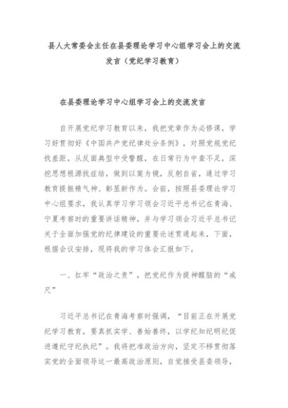 【七哥公文】2024年:县人大常委会主任在县委理论学习中心组学习会上的交流发言(党纪学习教育)+更多免费公文+VX:QiGeGongWen2024