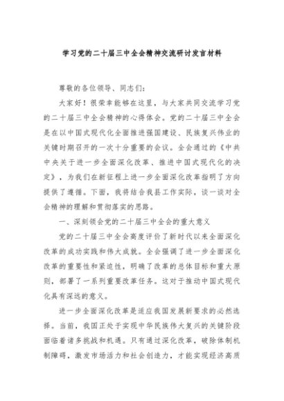 / 【七哥公文】2024年:学习党的二十届三中全会精神交流研讨发言材料+更多免费公文+VX:QiGeGongWen2024