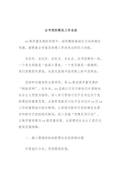 / 【七哥公文】2024年:全市党的建设工作总结+更多免费公文+VX:QiGeGongWen2024