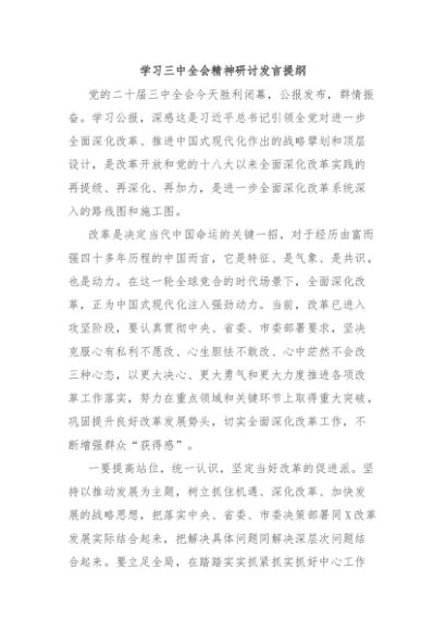 【七哥公文】2024年:学习三中全会精神研讨发言提纲+更多免费公文+VX:QiGeGongWen2024