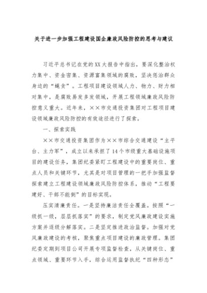 【七哥公文】2024年:关于进一步加强工程建设国企廉政风险防控的思考与建议+更多免费公文+VX:QiGeGongWen2024
