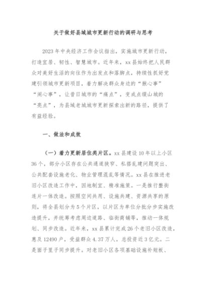 / 【七哥公文】2024年:关于做好县域城市更新行动的调研与思考+更多免费公文+VX:QiGeGongWen2024