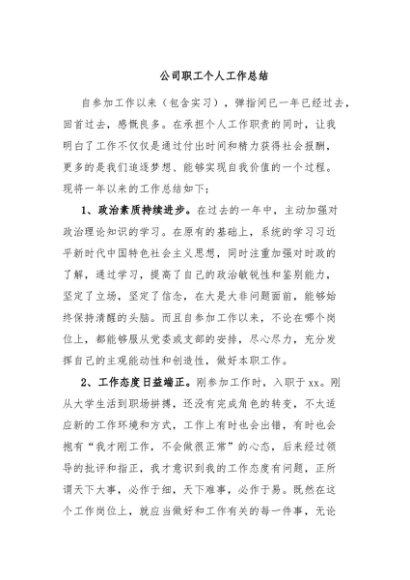 / 【七哥公文】2024年:公司职工个人工作总结+更多免费公文+VX:QiGeGongWen2024