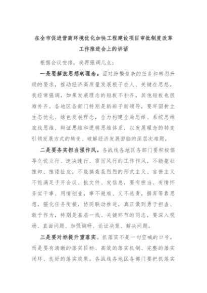 【七哥公文】2024年:在全市促进营商环境优化加快工程建设项目审批制度改革工作推进会上的讲话+更多免费公文+VX:QiGeGongWen2024