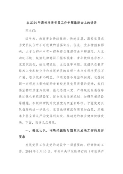 / 【七哥公文】2024年:在2024年高校发展党员工作专题推进会上的讲话+更多免费公文+VX:QiGeGongWen2024