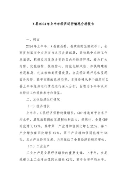 【七哥公文】2024年:X县2024年上半年经济运行情况分析报告+更多免费公文+VX:QiGeGongWen2024